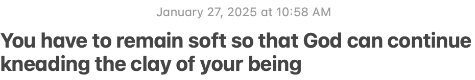 You could open up to any page of my copy of Agua Viva and find a faint underline in pencil of nearly every line in the book. At random, I opened the book found two which spoke so clearly to me they brought me to tears.
